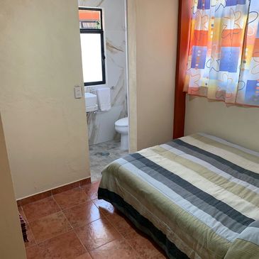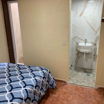Habitación para 1-2 personas en el centro de Tlatlauquitepec, con cama matrimonial, escritorio, WiFi y estacionamiento. Baño propio con acabados de lujo, entrada independiente y fácil acceso a servicios, transporte y actividades.